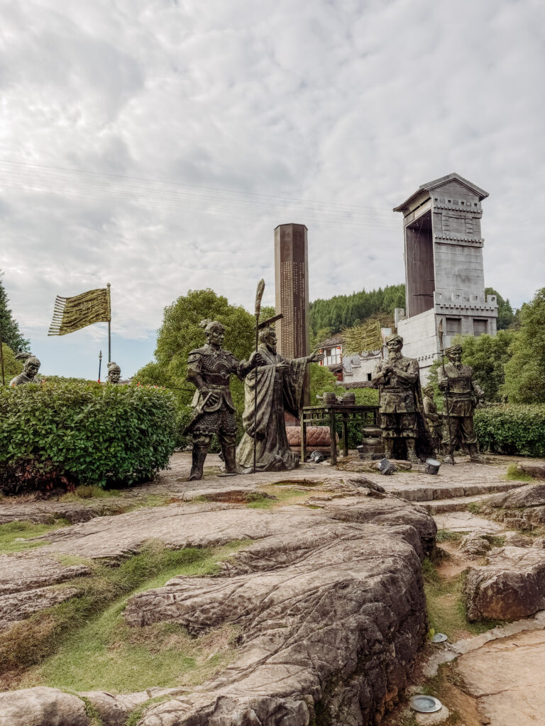 You wonโ€™t miss this spot right near the hand waving hall. It is dedicated to the Xizhou Bronze Pillar, an important historical relic (more on this below). The scene depicts the new alliance between the ethnic groups making a pledge  by drinking of blood between Peng and Ma.