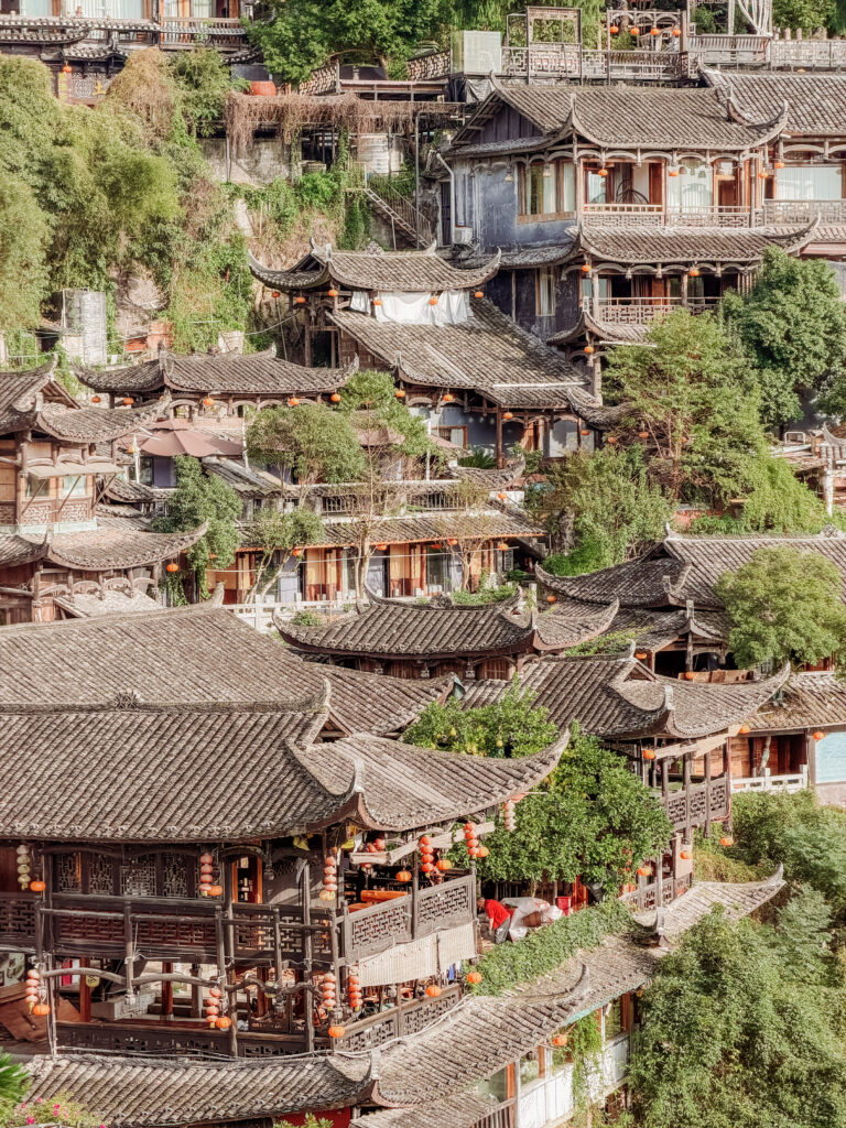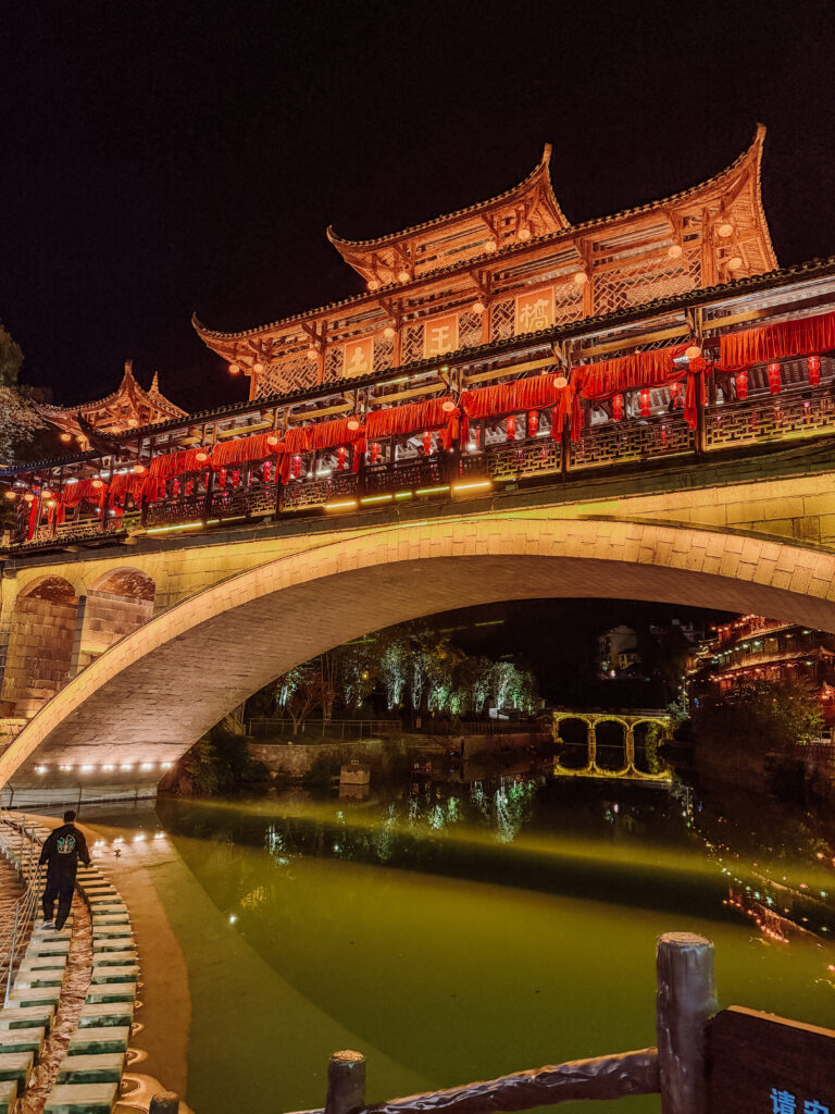 This is the prettiest bridge overlooking the town below. Itโ€™s at the top of the town and at night itโ€™s a great spot to view the lights. From here you cross from the entrance, across the stream and begin the main loop. Itโ€™s where the Tusi Kings would come to spend leisure time and chant. I can only imagine what this would have looked like in ancient times!