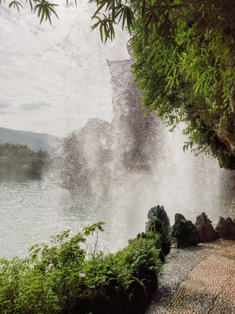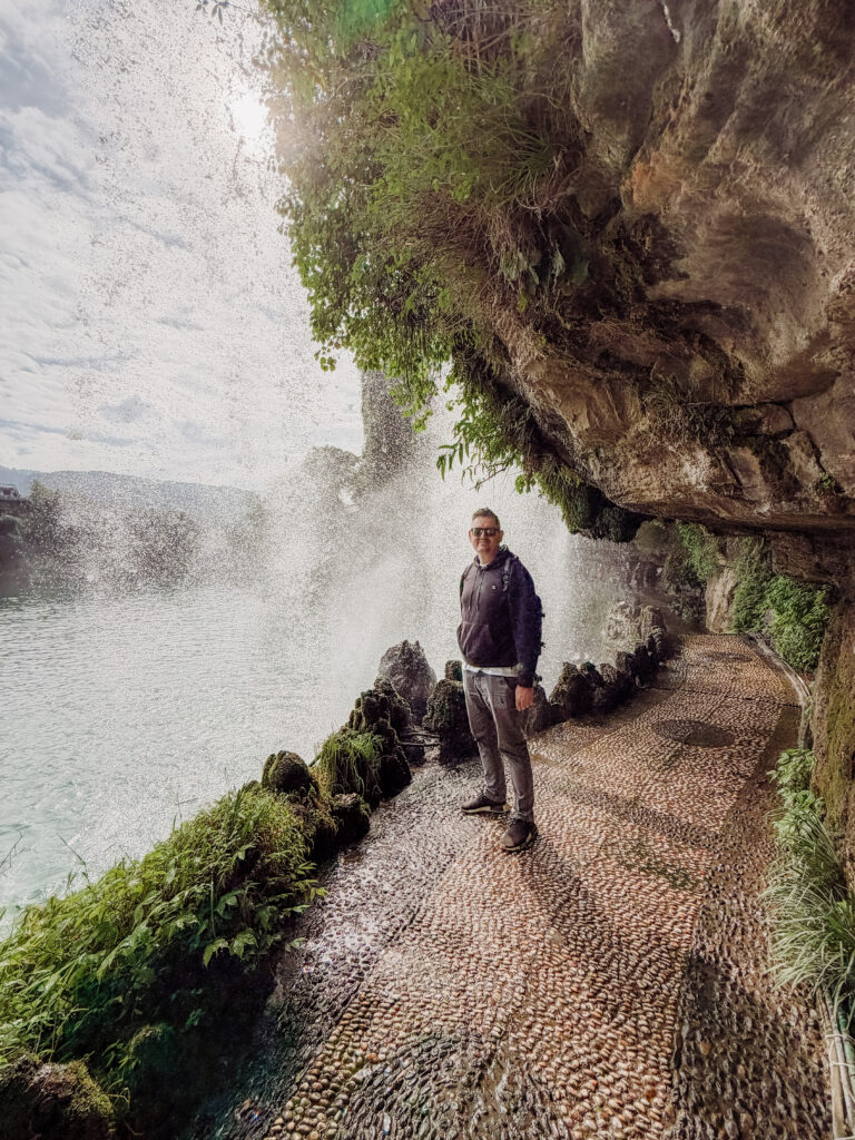 Donโ€™t miss the opportunity to get really close up to the star of the town! Walk down the steps to the waterfall, scan your ticket to walk all the way behind the curtain of water from the waterfall! There are some beautiful vantage spots here for pictures and itโ€™s so incredible to walk behind the sheets of water cascading right in front of you, feel the force of the water with mist flying out.