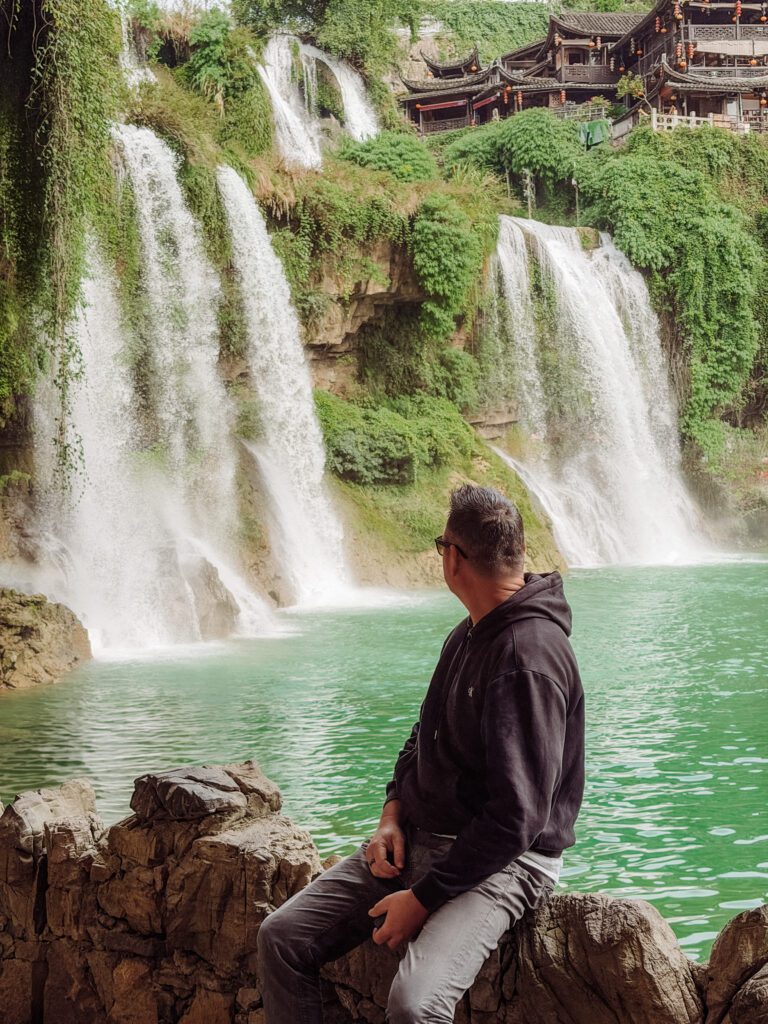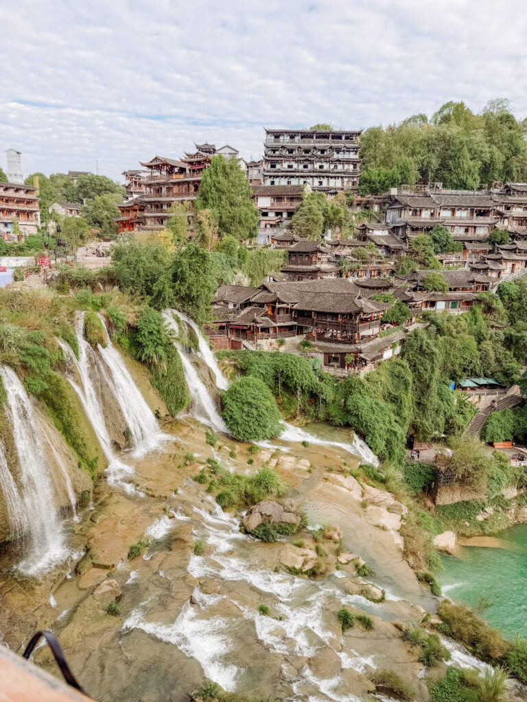 Furong is a little town is so inconspicuous that most travellers we met hadn’t heard of it, which only adds to its charm!  Its small size hides its secret attraction, a huge waterfall right in the centre! Furong means hibiscus and in the summer you will find them blooming everywhere here.