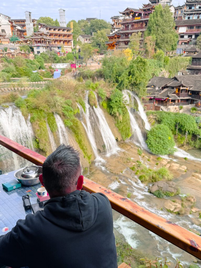 The local Tujia food is a delicacy and their flavours different to other areas. Try them in lots of different forms at a restaurant with a view of the waterfall, Mike loved the flavours in his noodles here.