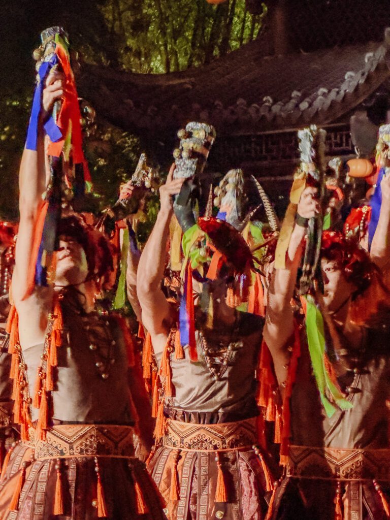 Tickets cost 108 CNY, you can pre book them here and then just show your passport to validate them. The best part of the ticket is that you can exit and re enter as you need and it also includes 2 shows. They are both great but the first was our favourite so if you plan to leave that night you could skip the second if needed.