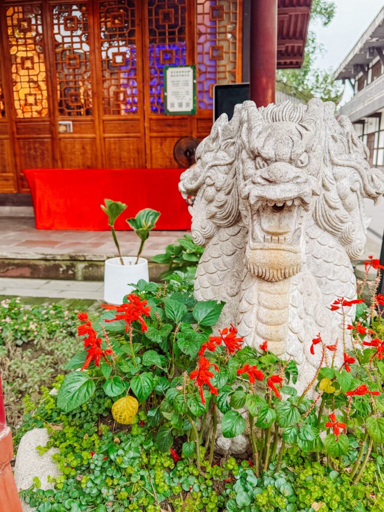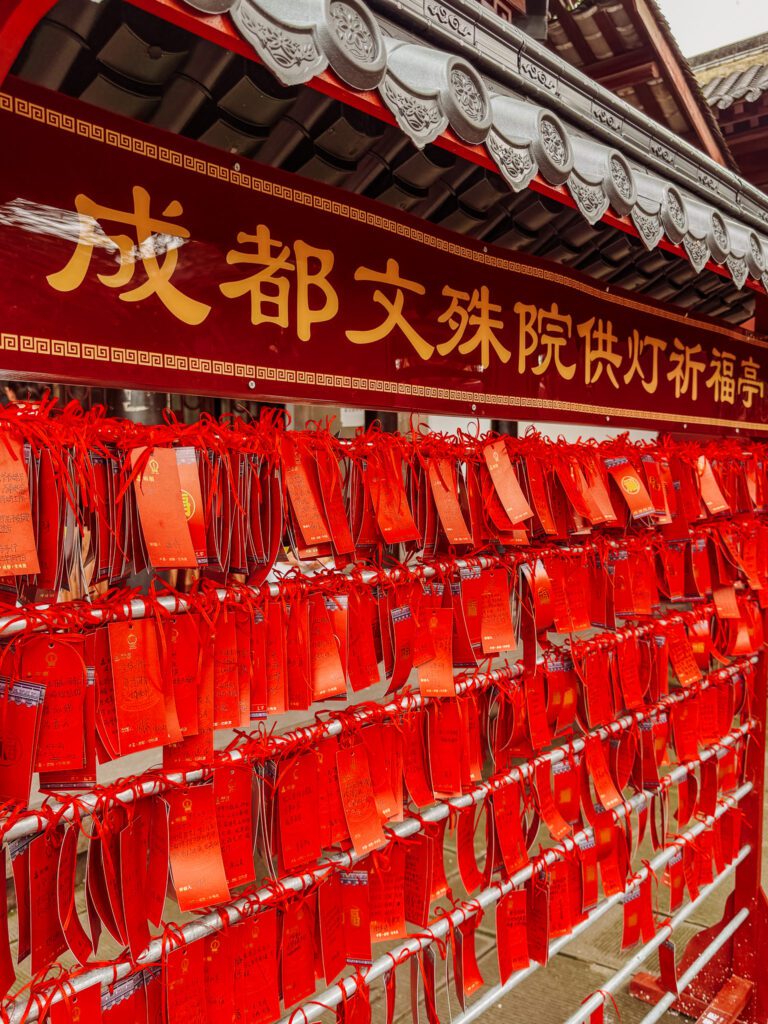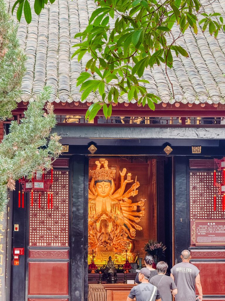 This is a Buddhist temple with beautiful architecture and peaceful gardens. We walked around here for a while and soaked up the peaceful atmosphere. Outside you will find a red wall that is famous for getting your picture with and a street full of market stalls and some good dan dan noodle shops.