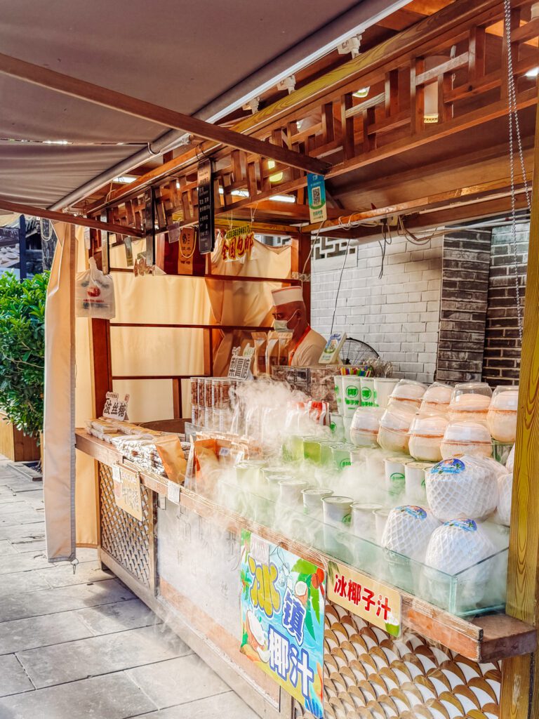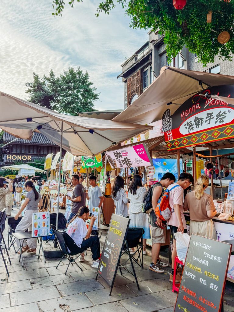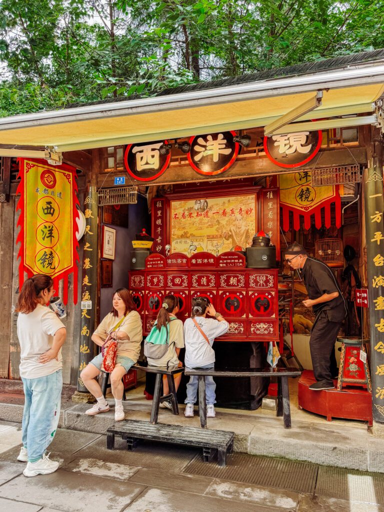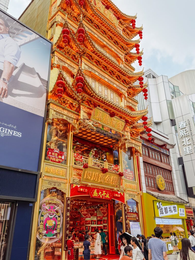 A pedestrian shopping street where you can experience the energy of Chengdu’s nightlife, with shops, restaurants, and entertainment options. We walked down here during the day and it was already vibing.