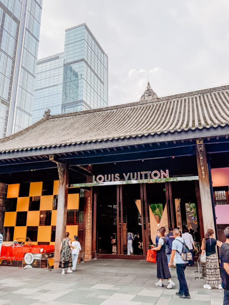 Taikoo Li is a very cool shopping district where you will find luxury brand names housed in ancient buildings. It is an interesting juxtaposition to see Luis Vuitton in an old chinese builing and honestly it works. We walked around here in the evening and watched the people milling around. There is a cute little local craft market just outside and make sure to look up to find the big 3D billboard across the road. While at Taikoo Li check out Feng suo book store which is an excellent place to stop in and look for cute panda souvenirs.