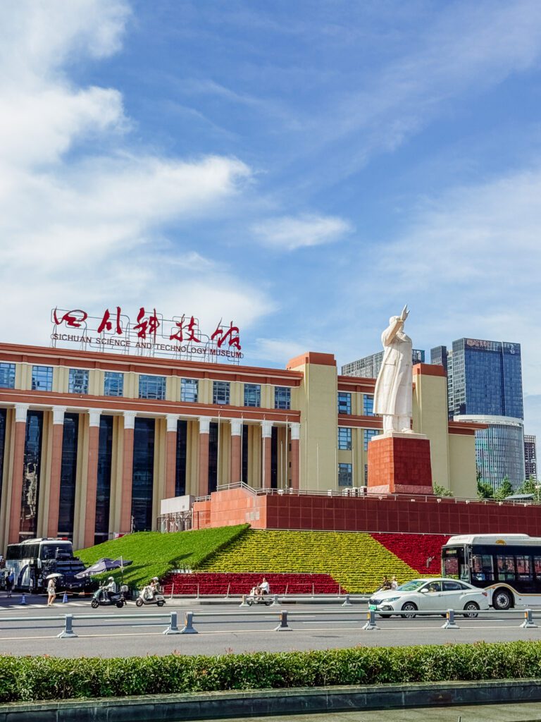 Tianfu Square is the largest square in the city, located in its centre, surrounded by tall skyscrapers. You will see the giant Chairman Mao’s Statue. Mao Zedong was the first Chairman of the Chinese Communist Party, he founded the People’s Republic of China. Positioned around the Square, is the Sichuan Art Museum, Chengdu Museum, Sichuan Science and Technology Museum, Sichuan Library and Sichuan Theater. We went to the Science Museum which has free entry (registration required-we just filled in our details at the entry) and it was really interesting. Floors of interactive displays it is a nice cool place to spend an hour or so. Head out to the centre of the square and down the escalators to discover the metro underneath the square which is like a city in itself.