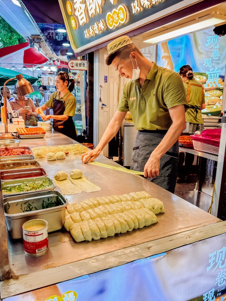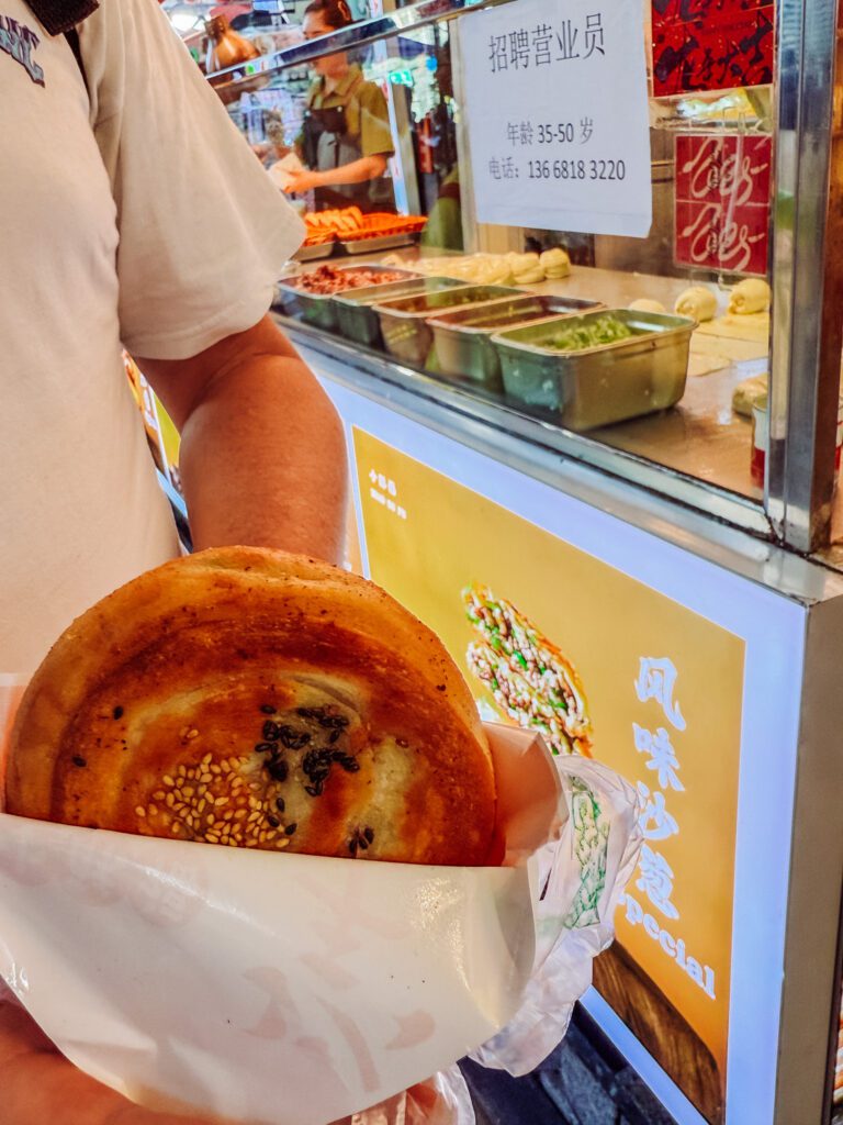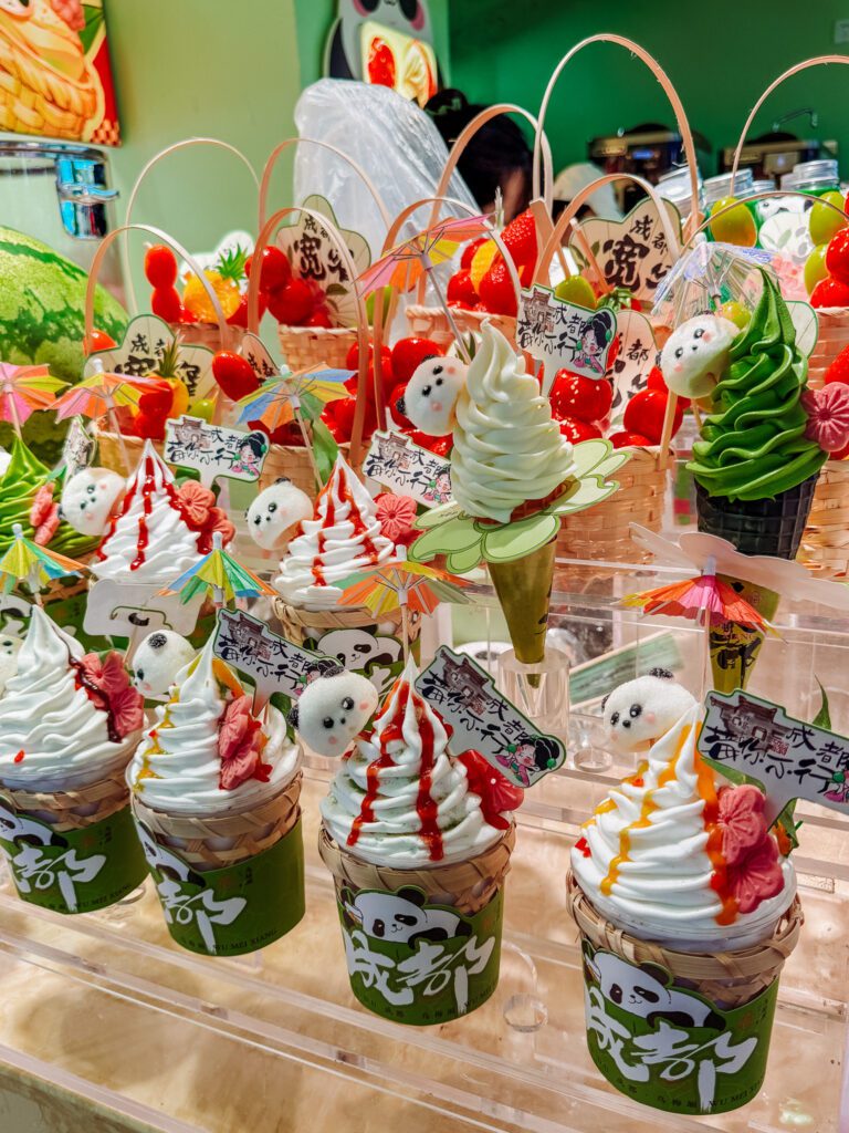 In terms of snacks then you should try Guokui (stuffed flatbreads) which Mike loved, Chuan Chuan (spicy skewers), Ice Jelly (Bingfen) or sweet rice balls. You also have to try all the cute panda themed desserts!