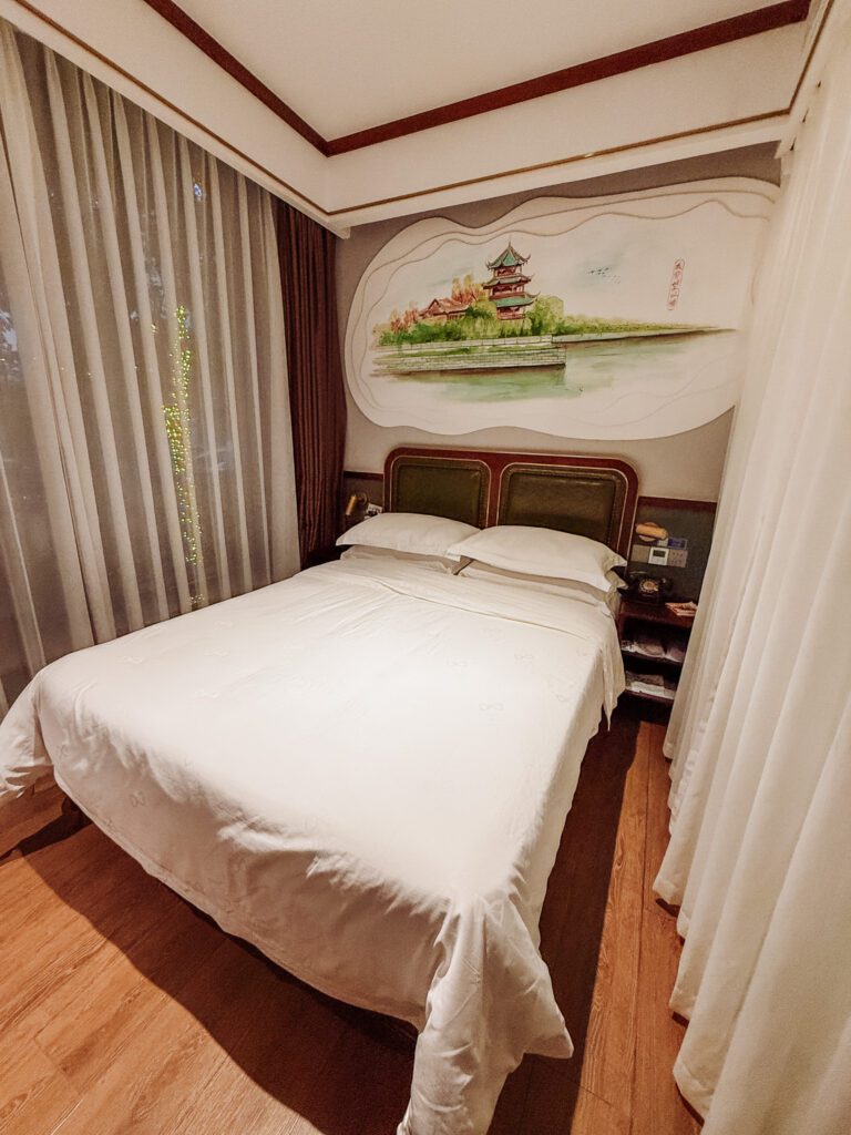 We stayed at a very cool little hotel near the Kuan Alley and Zhai Alley area. It is Nostalgia Hotelkuanzhai Alley Chengdu, they had the nicest breakfast in the morning and the hotel had a retro vibe that we loved! It served tea and a warm snack of congee at night, was quiet and an easy walk to People’s Park too.