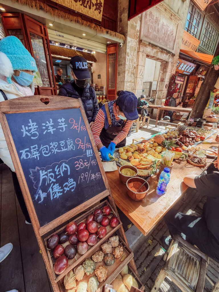 Very specific to the Kunming area is the potato! You purchase a grilled potato and then top it with your choice of a variety of species and sauces.