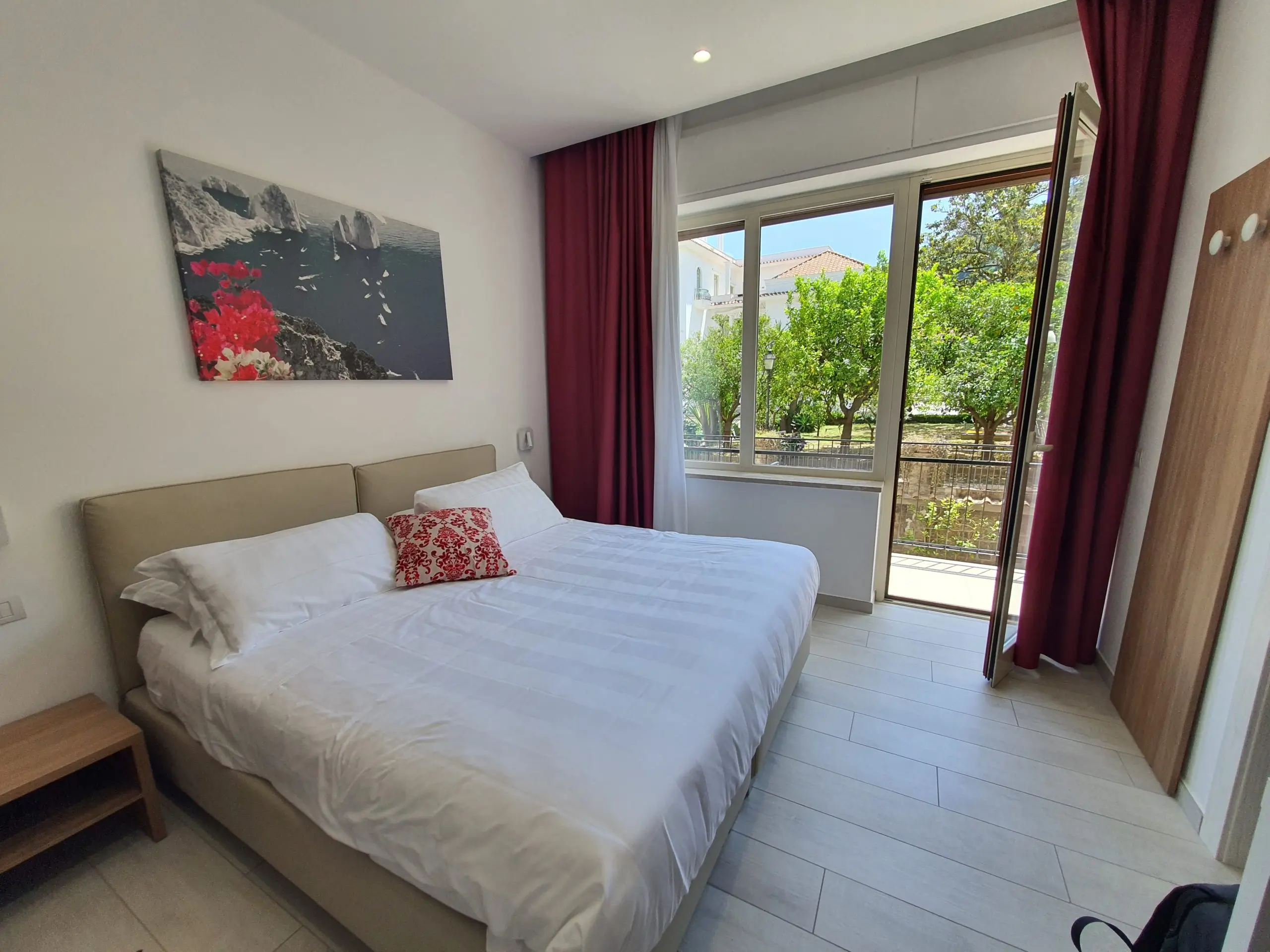 Our room is called Carmella (to request it ask for stanza Carmella con balcone) It was beautifully appointed and very comfortable. The bed may be the most comfortable we have slept on anywhere in our travels. The sheets were of a high quality and the pillows were a dream.