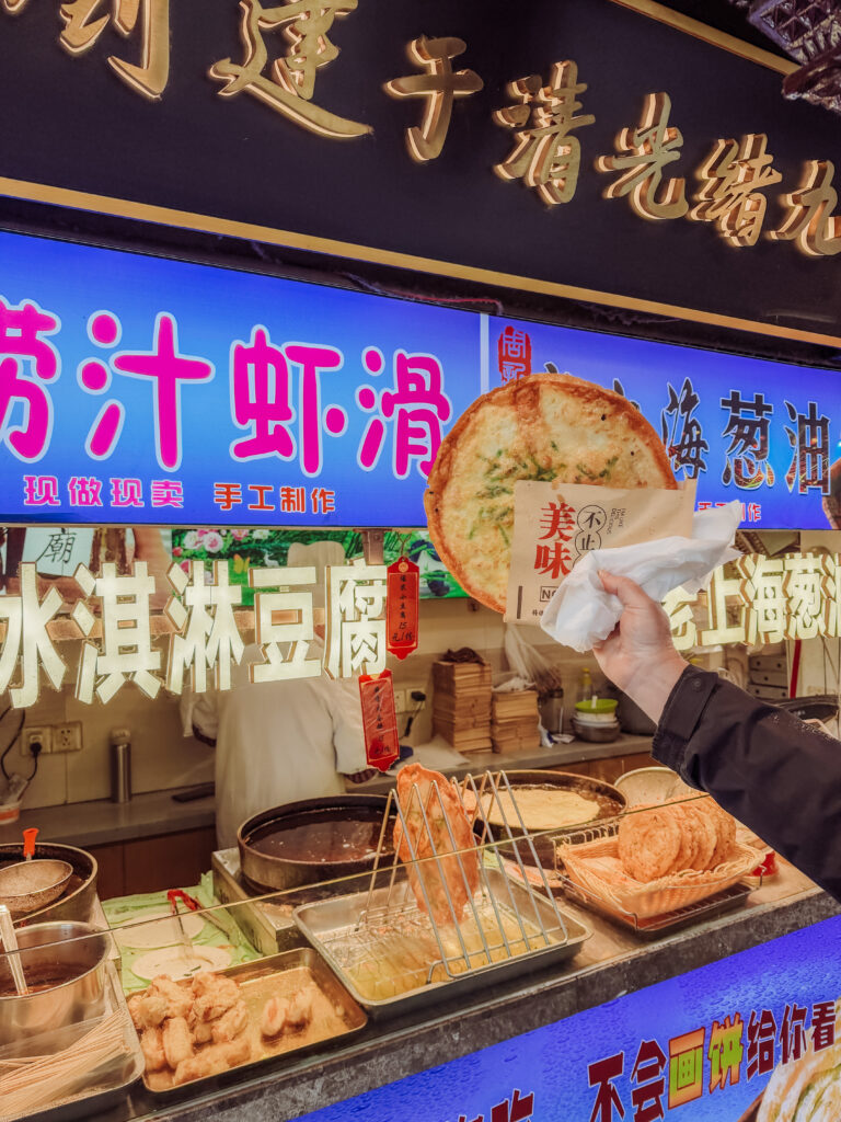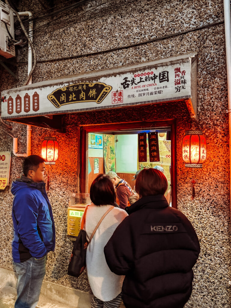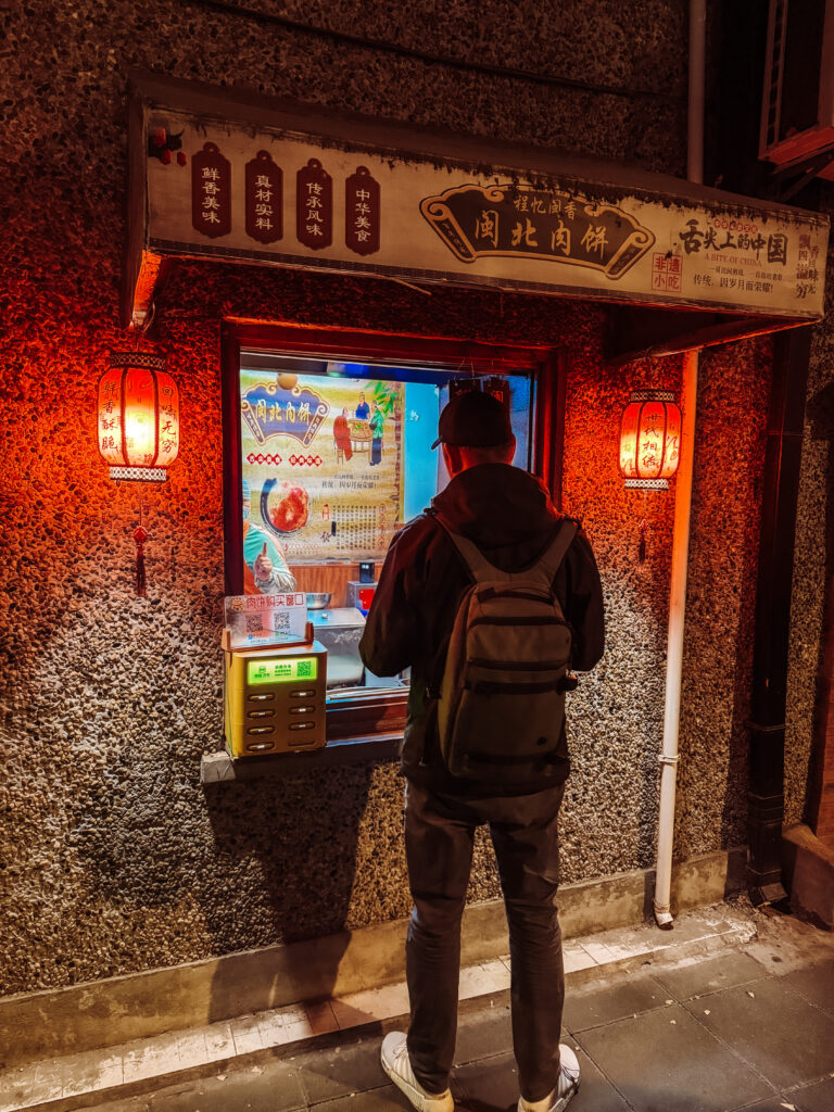 Tip – find this hole in the wall shop and grab either a pork or vegetable baba. Mike thinks it’s the best he had in China. You’ll have to join the line up of locals though! We ended up waiting 10 minutes for them to come out of the oven which just added to the taste and experience. 7 CNY each and totally worth it!