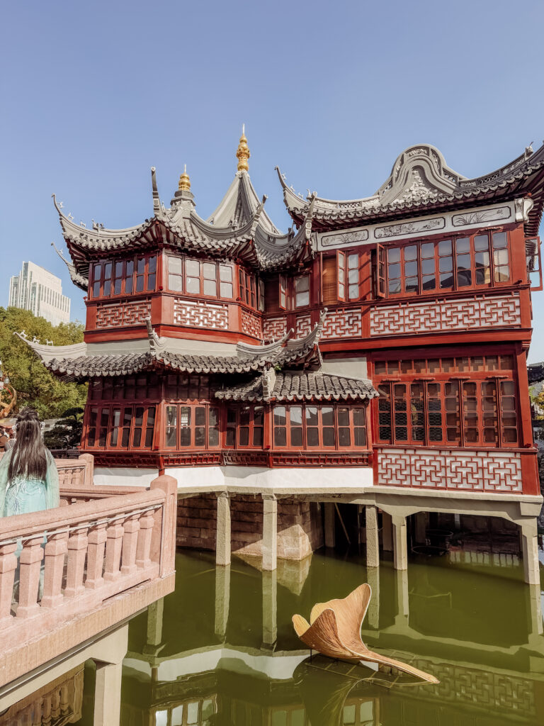 A very short walk behind Yu Garden is Jiuqu Bridge. An area with stunning Chinese architecture and water views. This is also where you’ll find incredible street food that you have to try in Shanghai!
