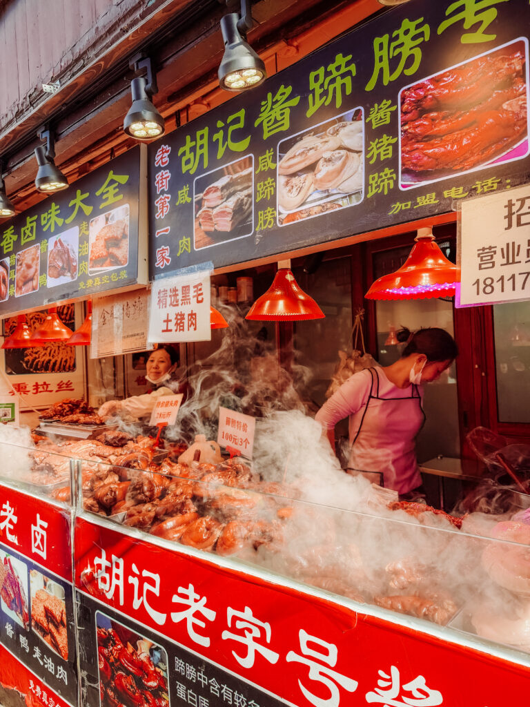 While at Suzhou make sure to walk down the Pedestrian Street. Full of street food snacks and in particular the local specialty rice cakes, tofu and pork! There’s lots of cheap shopping here as well in souvenirs such as fans and scarves.