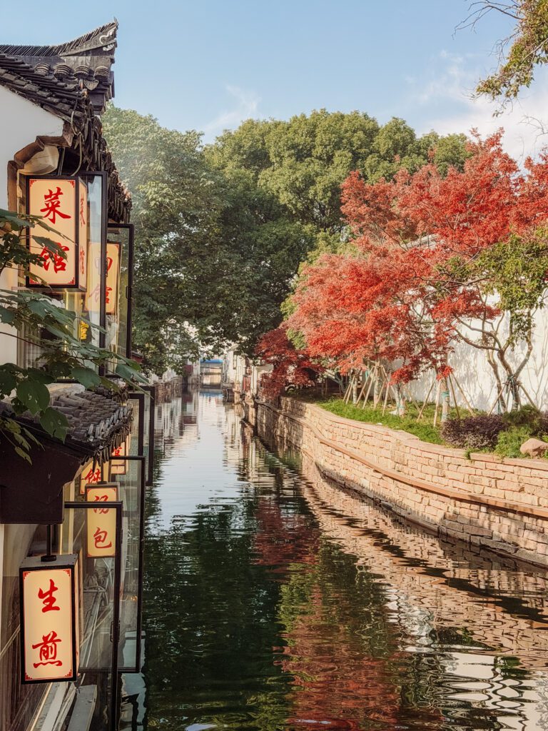 Jump straight on the metro to Qingpu, a tiny water village just 20 minutes from central Shanghai. This town consists of a Main Street, 3 temples and a canal but it’s very quaint (albeit busy around lunch) and a nice start to the day. We spent an hour and a half here and loved the quiet morning vibes.