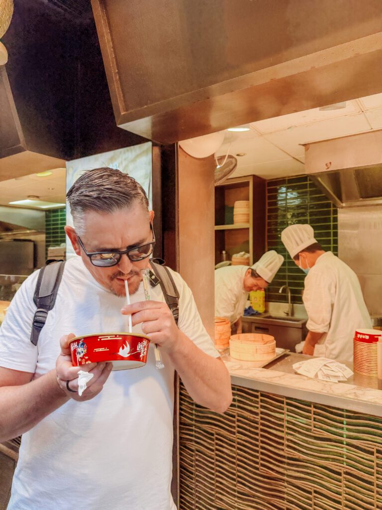Mike had the iconic Shanghai soup dumpling here. Made on site it was big and filled with a crab soup, he was given a straw to drink the liquid then chopsticks to eat the dumpling. Very tasty!