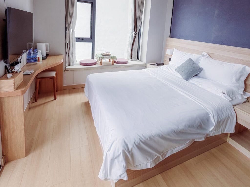 There are tons of hotels here to choose from though, some quite luxuriously beautiful ones that I would definitely look at if we wanted a bigger splurge next trip, this pink one is one of the most popular on social media. You can check them out on Trip which is the only place to book anything in China! We used it for all attractions, tours, hotels, plane and train tickets.
