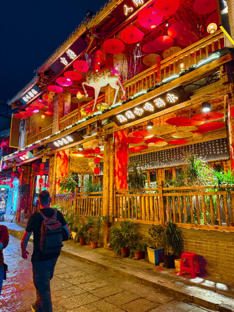 As soon as I saw the big mountains and lush green surrounds I was hooked. Make sure you get a room with a view as it will make your experience so much better! The Yulong River is the focal point of the area and youโll find yourself amongst loads of happy local tourists having a ball! Theyโre all so lovely calling out hello and thoroughly enjoying themselves. I felt like we stumbled on the heart of China here and I just loved it!