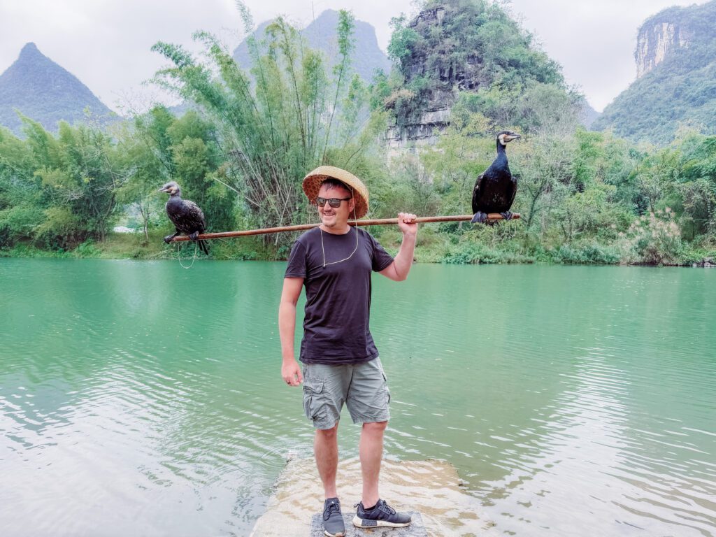 Down by the river you will find cormorant fisherman who will let you hold their fishing pole and birds, Mike got involved being a keen fisherman!