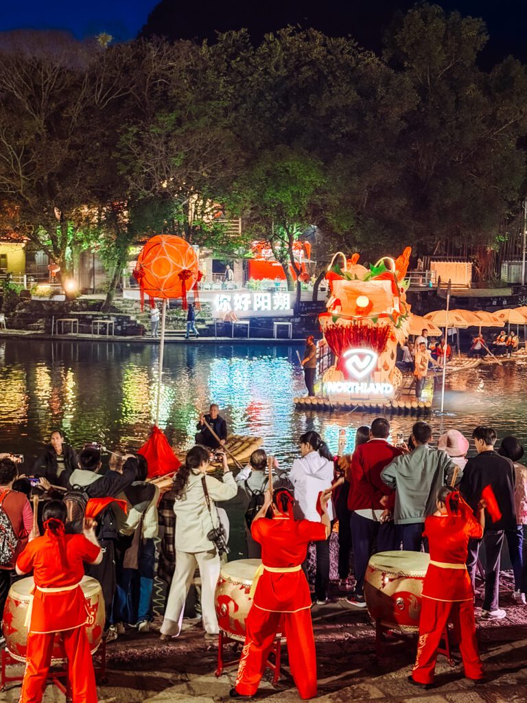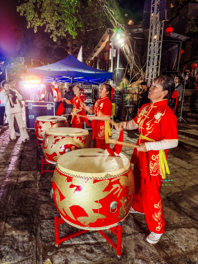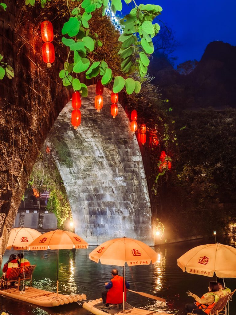 On your way back from the Fuli brightly stop in at the Yulong Bridge, itโs another curved bridge with town attached. Here we met a local who told us about the show thatโs on here each weekend! We were so excited to come back in the evening and catch it.