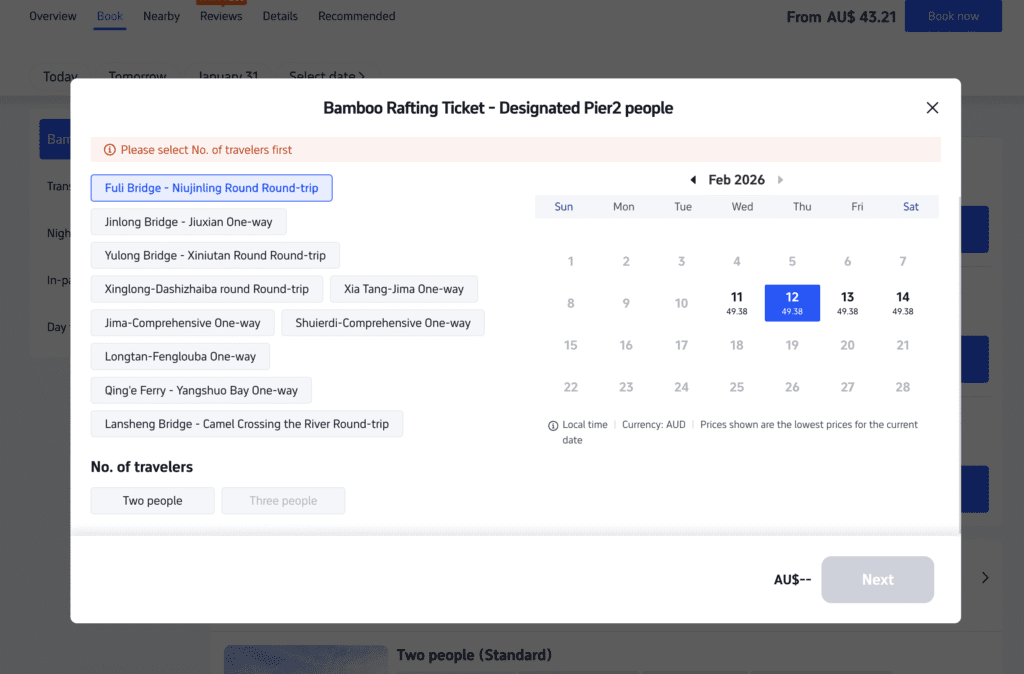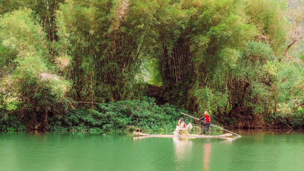 There is a bamboo rafting experience at โโ which has a 320kg weight limit can take 4 people and is a return trip taking 30minutes and costs 200CNY.